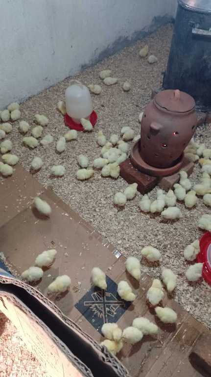 poulets démarré en avril. Tous les animaux ont été vendus récemment.